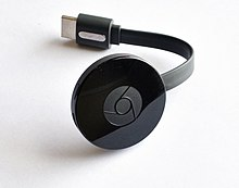 2013年发布。售价$35。无遥控器,仅具有投屏功能,分辨率1080P 30fps/720p 60fps。支持通过Google Chrome浏览器投屏或者通过支持的第三方视频app投屏。安卓系统也可以快速投屏。产品支持CEC功能。当您的电视关闭时,Chromecast接收到投屏信号,可以自动开启电视。本产品2023年4月已停止技术支持,不再享受软件更新。但是短期内依然具有使用价值。