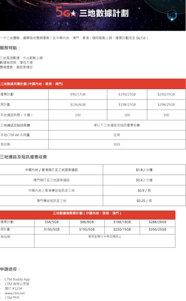 这个计划的灵活性和价格合理性使得它成为前往内地、澳门和香港的游客和商务人士的理想选择。无论您是需要稳定的通信还是高速的数据传输,CTM的一卡三地计划都可以满足您的需求,为您提供畅快的通信体验。